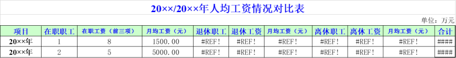 人均工资情况对比表(模板)