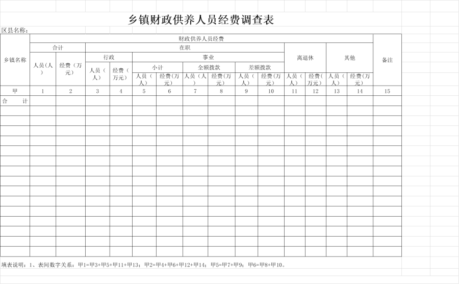 乡镇财政供养人员经费调查表(模板)