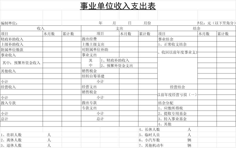 事业单位收入支出表(模板)