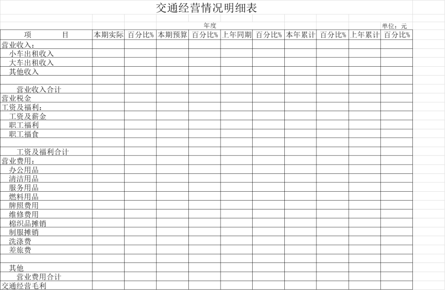 交通经营情况明细表(模板)