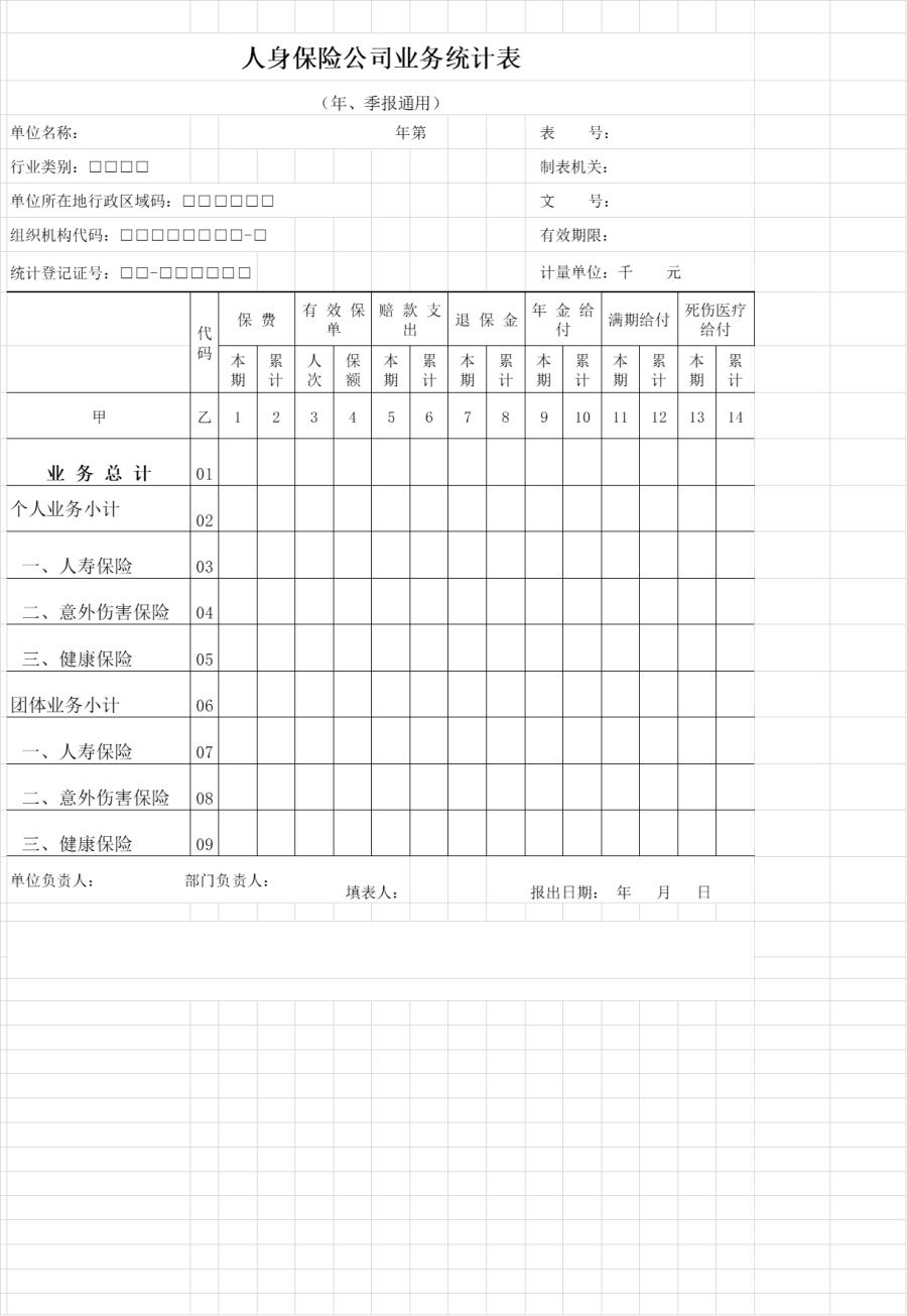 人身保险公司业务统计表(模板)