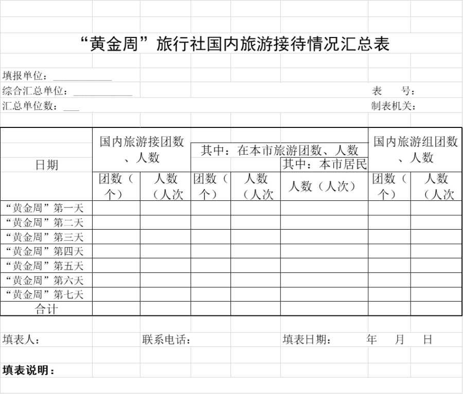 “黄金周”旅行社国内旅游接待情况汇总表(模板)