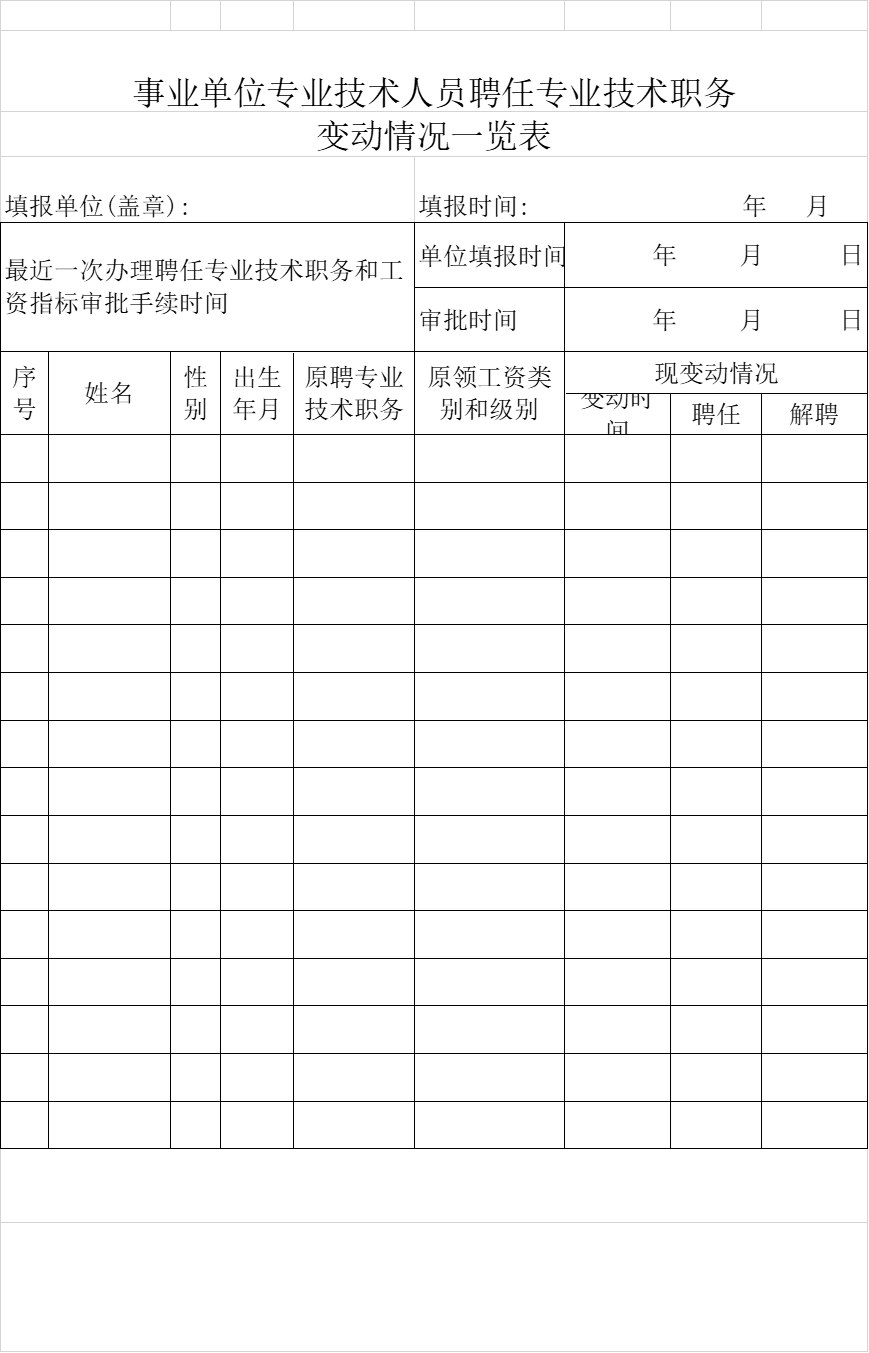 事业单位专业技术人员聘任专业技术职务变动一览表(模板)