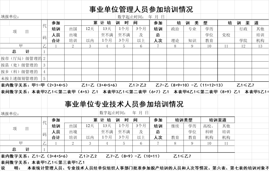 事业单位人员培训情况表(模板)