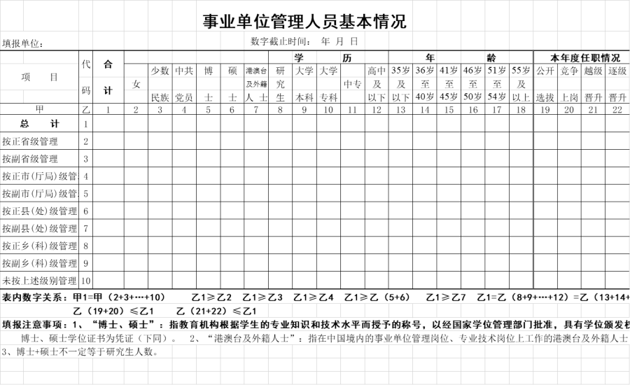 事业单位管理人员基本情况表(模板)
